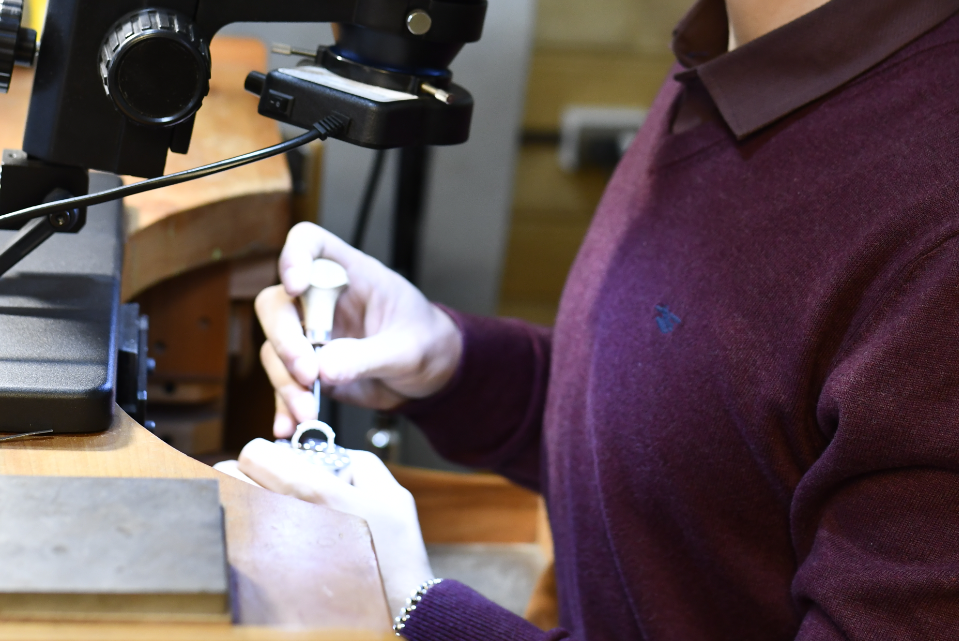 El alumno aprende a manipular herramientas de precisión, esenciales en la joyería fina.